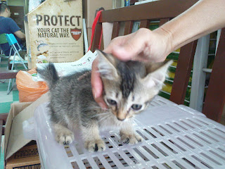 Here are the two kittens adopted today, by none other than our cat-angel, Vics – it’s for Vics’ friend. The kittens are strays who are being fed by Rani. Thank you once again, Vics, for helping us take two kittens off the streets. Anytime an animal is adopted (especially a stray), it’s an occasion for celebration.