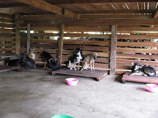Our 13 dogs are ok. But they were a little scared when we (the workers and I)first entered the enclosure and quickly went up to their platforms for safety. Poor things… Some are still quite traumatised by the mere sight of people.