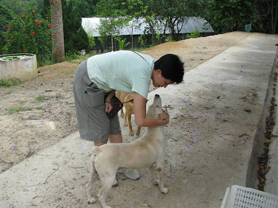 Mr Mariappan (the Indian gentleman you see in the fifth photo) is the person who has been looking after all the dogs. The other workers need to work on the farm, so Mr Mariappan is solely in charge. He cooks for them, feeds them, and cleans their enclosure every day. And he certainly knows them very well by now.