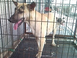 Ken is a charmer. Just look at how he smiles at you. There were 4 other dogs (brought in by other rescuers) in the clinic this morning so these dogs had to be lined up outside the clinic in their respective cages.