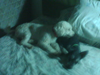 Sean is boarded in a new bathroom now (!), and is being treated for his distemper cough.