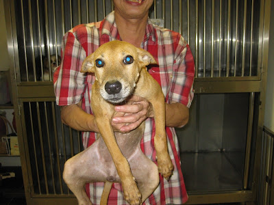 Perky was rescued from Klang Dog Pound on 15th Dec, went by lorry to LLLP, Bentong, boarded in the enclosure with many other dogs, spayed on 20th Dec (she was the one who bled after the vet left, so I had to stop her bleeding by using pressure on her wound). On 21st Dec, the SPCA vet who went with us said Perky wasn’t looking good, so Perky (along with Roger, Russell, Sean, Wendy and Sweetie) were transported by van back to KL. Perky was sent to PAWS for boarding, and the manager called to caution me she was in such a bad state that he thought she might die any time, even before I came back from Bentong. Perky WAS is a terrible state that evening. I was very, very worried. The next day, she perked up a little. And we fed her chicken soup and chicken meat every day after that.