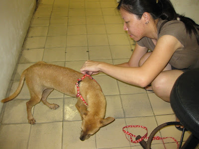 Since I was using the MyVi, we could only ferry two dogs at a time, so we took Russell at the back of the car, using a cage, and Ainey carried Sweetie in front.