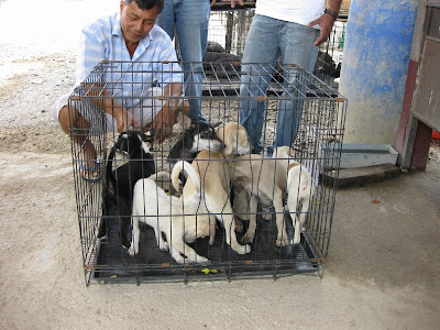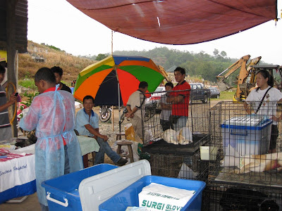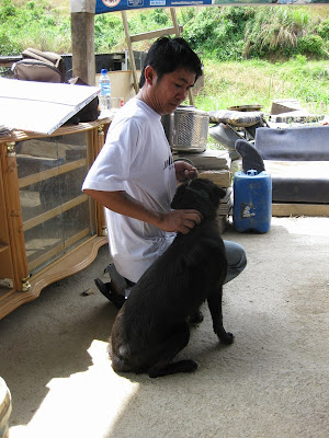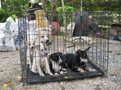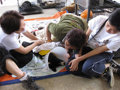 The dogs had already been fasted and caged, all ready for us. Meiji had also chloroxed the entire place this morning.