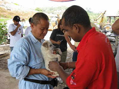 And while the the table was being set up, the puppies were vaccinated by Dr Ragu. We sponsored 60 vaccines for Meiji’s and Kwai Chee’s dogs.