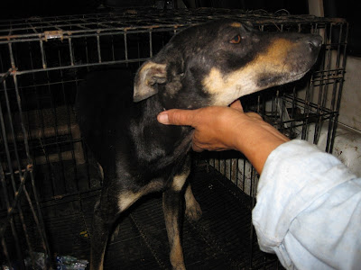 Meiji had brought Doby for us to see, one of our rescued Klang dogs whom she took over from LLLP when he was dying. Doby was caged in LLLP because he chased chickens. Meiji rushed him and another dog to Ampang for treatment that evening. The other dog died of distemper that night itself, and even though Doby travelled in the same car with that dog, he was fine.