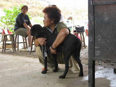 This lady is a breast cancer patient (look at her swollen hand). But her illness does not stop her from doing all the good she can. She has adopted a rescued cat and a rescued dog, and looks after them as best she can. This mixed pug practically had no hair when he was rescued off the highway. Look at him now – I think I can get him adopted if I had brought him back! But he’s definitely better off with these kind humans over there (no dogcatchers, too!).
