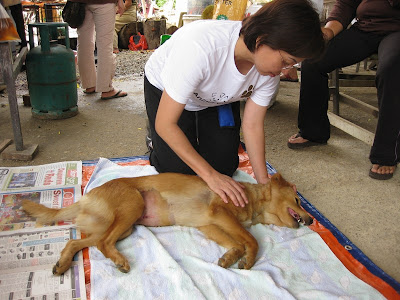 Many were very curious too. It must be their first time witnessing spaying-neutering of dogs. That’s Dr Ragu doing the last dog for the day. He’s male and a wee bit aggressive (I mean the dog, not Dr Ragu!). That’s why he was kept for last!