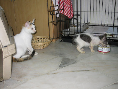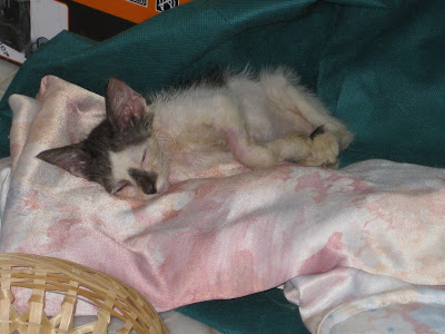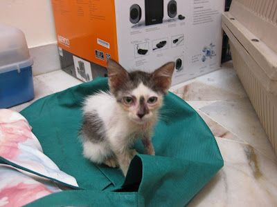 Meanwhile, Teddybear needs to fatten up and grow! The vet is happy with his improvement from yesterday till this afternoon, but says he is still very thin and scrawny.