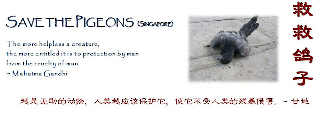Unconditional loving-kindness extends to all living beings. My friend from Singapore, Fangqi Huang, has started a blog to raise awareness of the plight of pigeons.