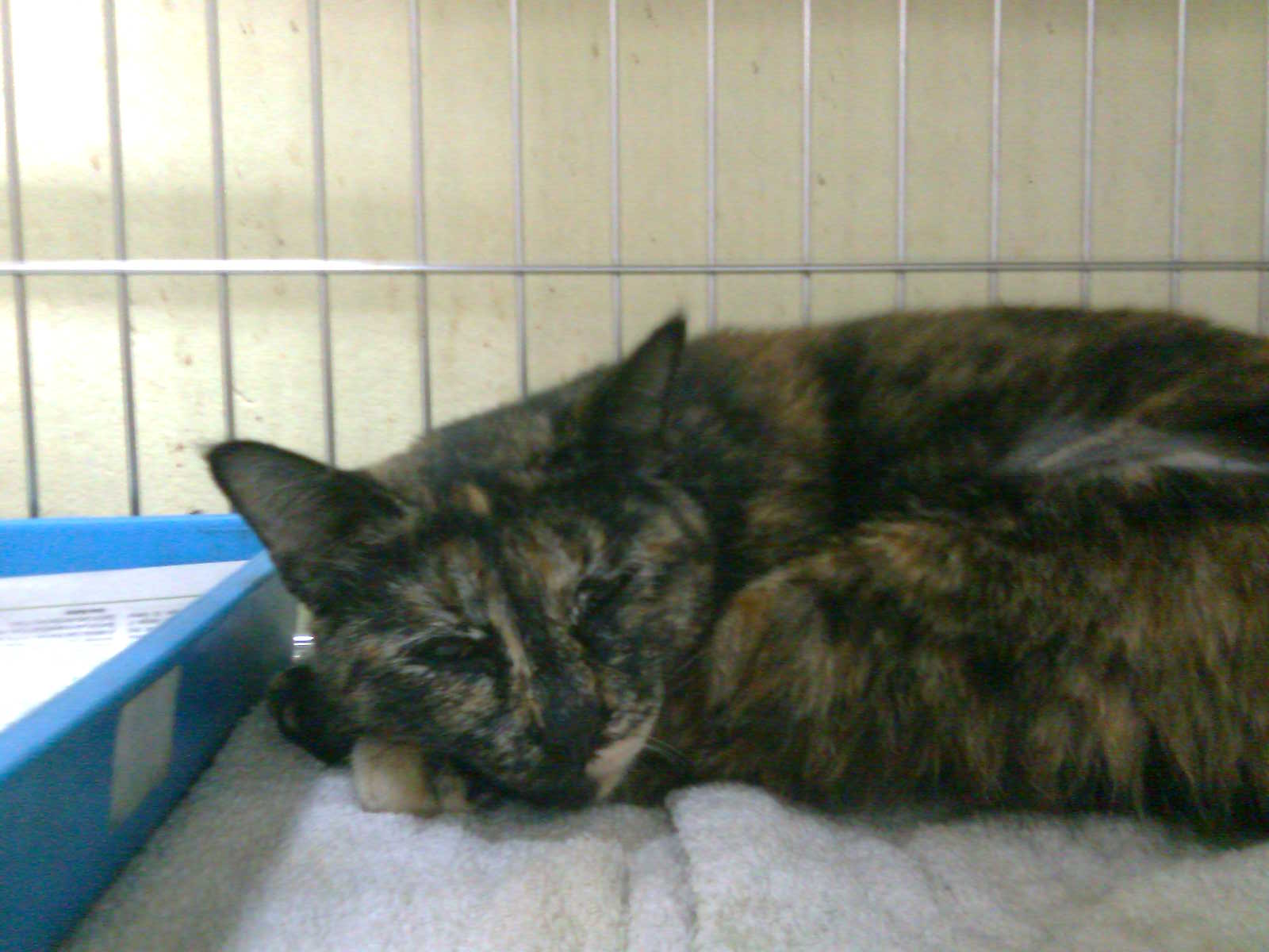 Here’s the cat when I visited her today. She is doing well. Reggie will return her to the colony after her wounds have healed.