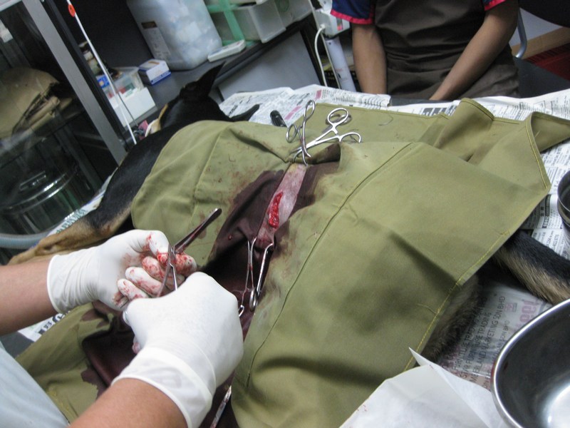 One dog undergoing the operation this afternoon. There was excessive bleeding so the operation took about half an hour. But the dog is okay.