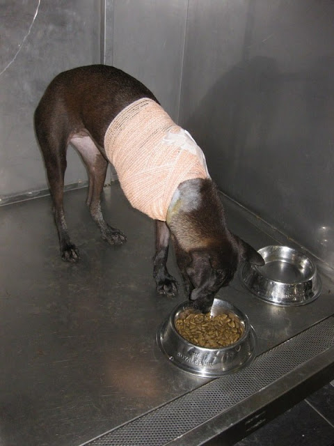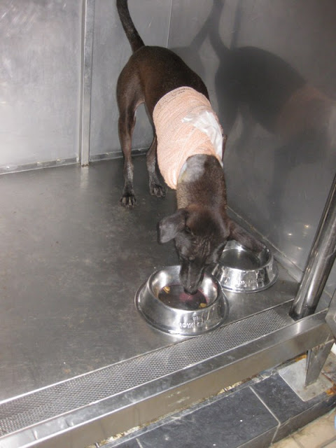 All of us watched…this is a sight that money cannot buy. The vet says this is such a good sign of recovery. Normally after surgery, the animals don’t even feel like eating, especially if complications had arose during the surgery. But look at Jenny…and look at her eat!