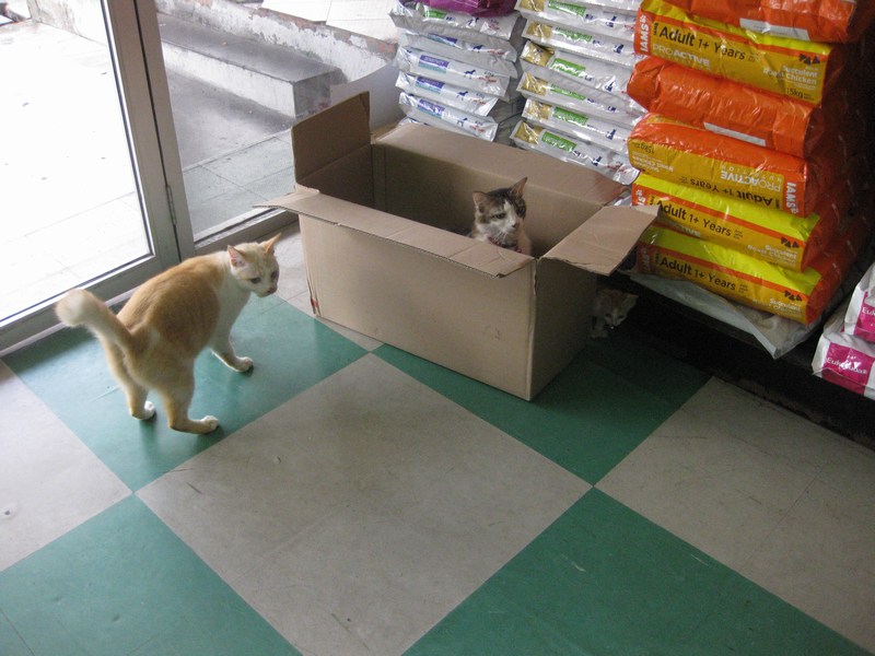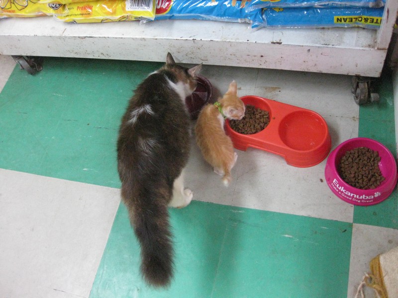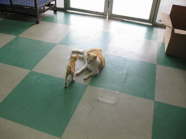 Here are some pictures I took two days ago when I visited DonDon and friends at the clinic. DonDon was one of the Popsicles dumped at my front gate many weeks ago. Alex, the clinic assistant adopted DonDon and made him the new clinic cat, in place of Dodo (who passed away of kidney failure at the age of 12).