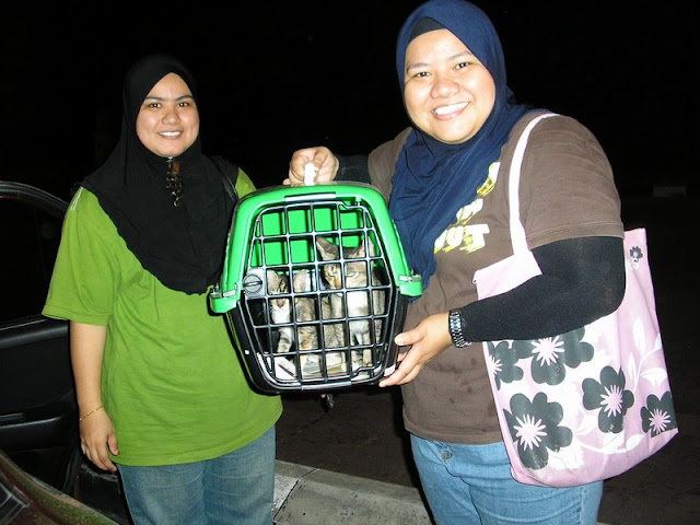 yesterday sunday. At 8pm Ms Shima and the sister brought both kitties to Malacca.