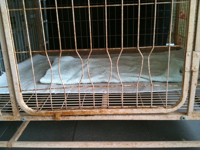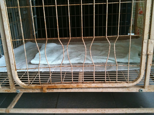 Here’s the very much delayed pic of Lucy. She was really desperate to escape back to Ah Fatt the first day she arrived (see photo of cage below). In fact, about a month after she was adopted, Ah Fatt and wife came by for a visit to see how Lucy was getting on. She was extremely happy to see Ah Fatt. After they left, she spent the entire night by the front gate waiting for Ah Fatt to return, whimpering and howling. She was OK after a day or two and has not howled since.