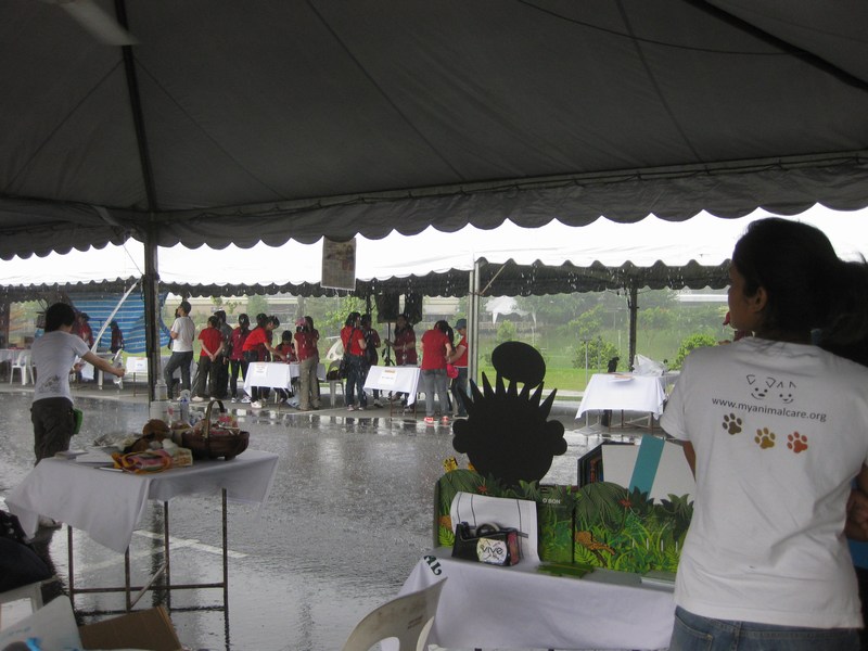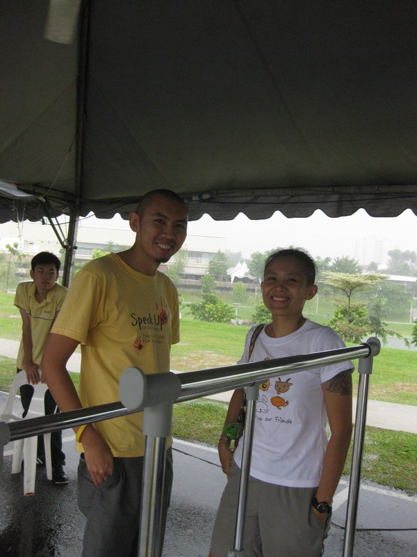 Amy Tham brought her niece, Janice, to help. That’s Nandhini, my life-saver for the day, as far as directions were concerned. We brought down the books, but left the tshirt stock in the car as the ground was totally wet and we were only given two chairs and one small table, so we had no where to put our stock.