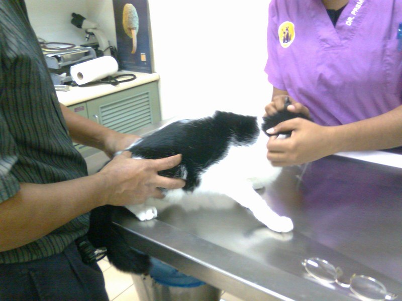 However, we tried twice, but Indy was just too stressed out to allow the blood to be taken. The blood had to be drawn from the jugular vein, which is at the neck, and this was too traumatic for Indy. The vet said Indy had been through so much lately, so we had better not stress him too much especially when Indy is such a sensitive cat.