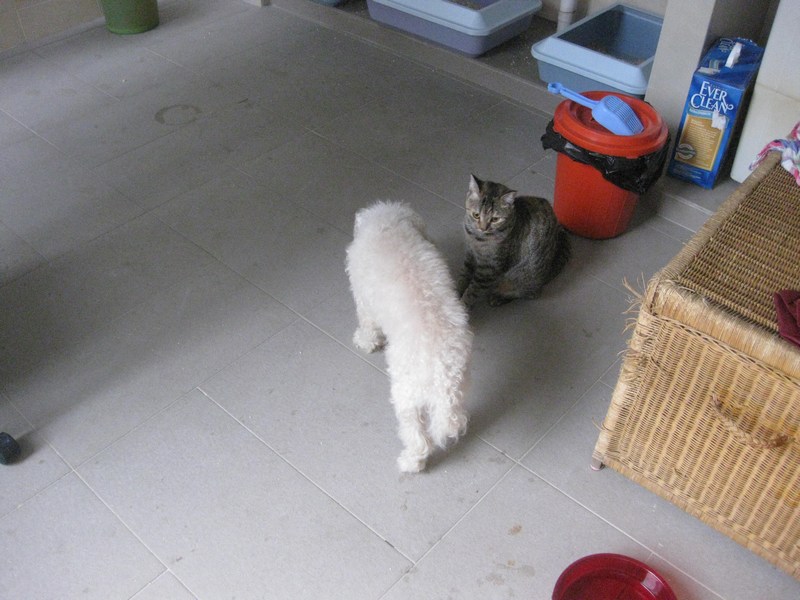 Nowadays, Bobby feels much better (after all regular acupuncture sessions), so he refuses to be handfed anymore. In fact, he resists it (like saying, “I can eat by myself, so please…I do not need you to feed me anymore”). So, once in a while, Cow resumes his duty of taking Bobby to his foodbowl again as he had done in the past.