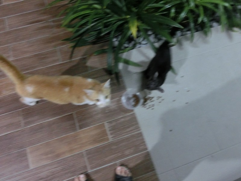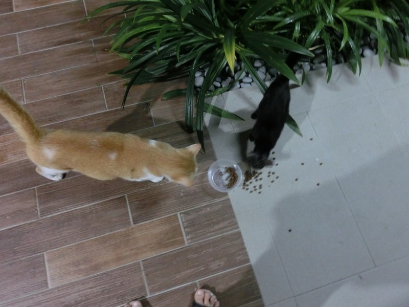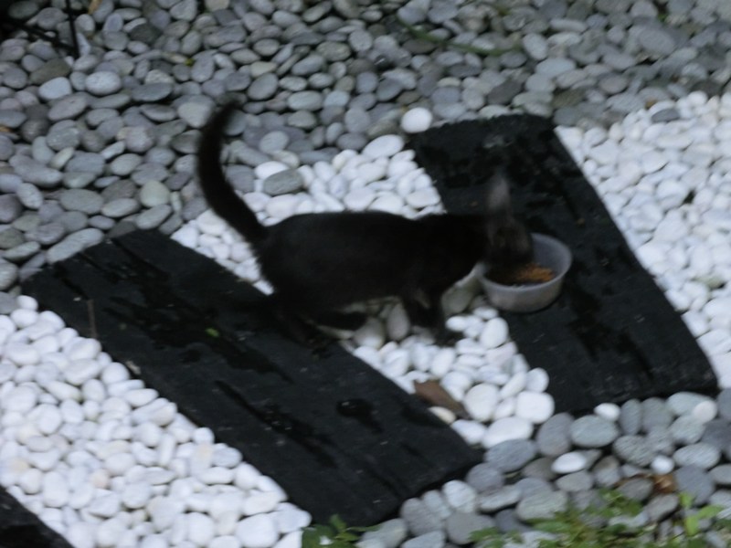 Actually our neighbourhood cat-feeder gives packetted free catfood every morning at the pavilion in the playground. So, Blackie can get a good breakfast there. Rosie eats there too.