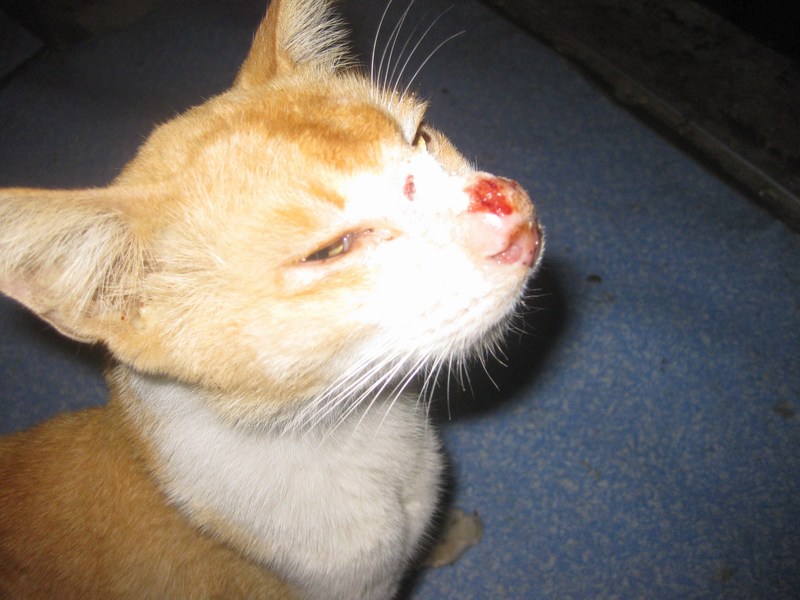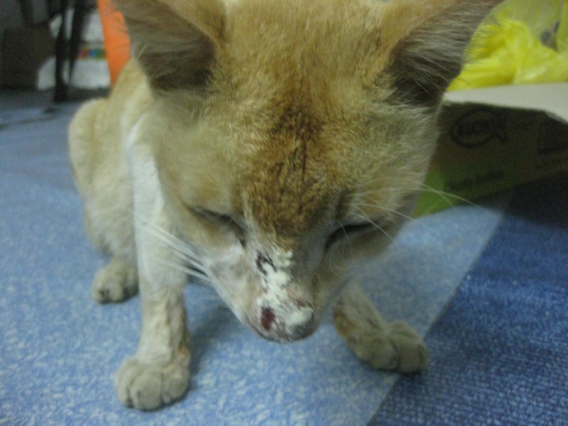Ongsan was a street cat and his plight was highlighted by a Burmese lady. The Burmese lady did not want to get Ongsan treated despite our offer of a medical subsidy, so we asked if Maslinda would be willing to take care of Ongsan. Thankfully, Maslinda agreed and the first two vets suggested that Ongsan be put to sleep because he was suspected to have sporotrichosis which had possibly spread to his lungs and he was severely jaundiced (his liver was swollen).
