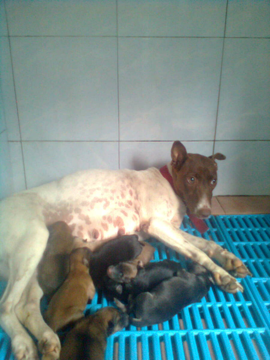 The rescued pregnant mother-dog gave birth to eight little puppies today!