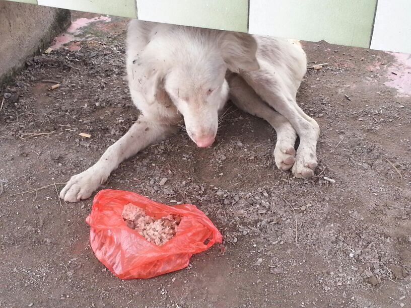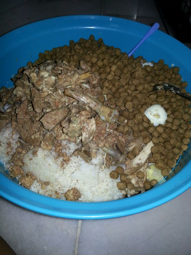 Lester HiewRice, eggs and Alpo for the puppies.Cooking the bones and innards.Boiling rice.Mixing the meat with rice and eggs.Mixing with kibbles.Packets of food all ready to go (on our nightly rounds).Here you go, doggie.