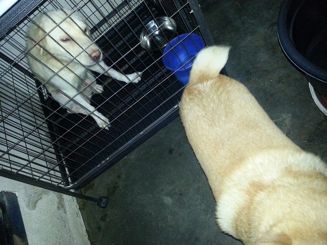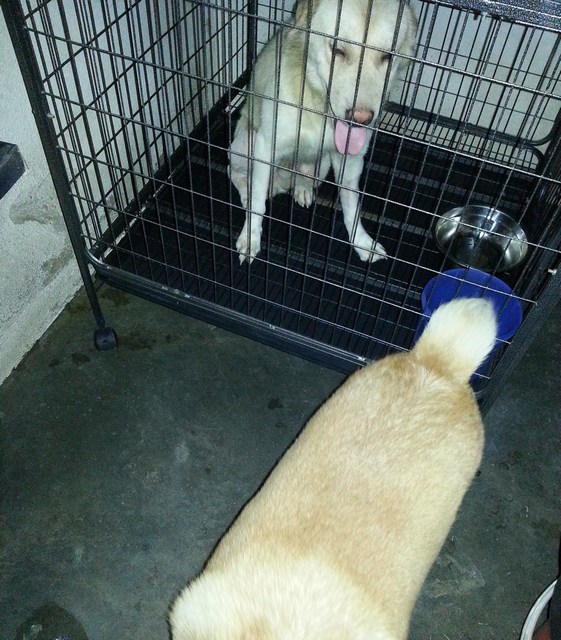 His road to recovery looks bright! He is getting familiar with my dogs too.He still has trouble peeing and pooping inside the cage as he is not used to being inside the cage and with his leg like that.