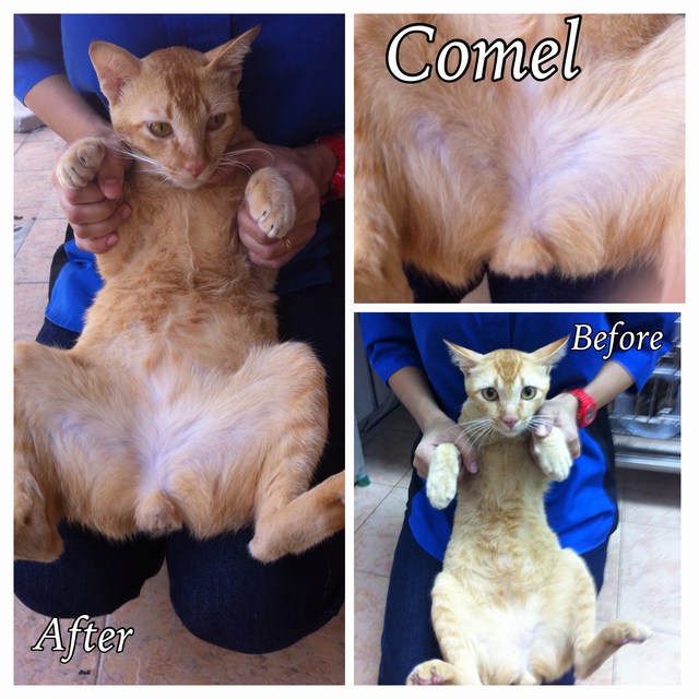We have subsidised RM180 for the spaying of Mika (female cat) and the neutering of Comel (male cat).