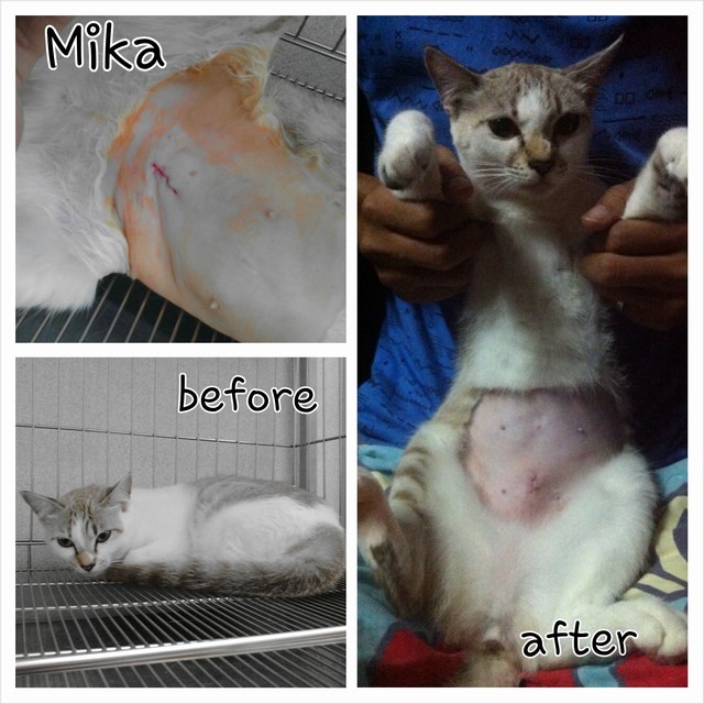 Mika adalah kucing betina yang dibuang sekitar tempat kerja saya semasa dia berumur 2bulan. Sekarang Mika berumur hampir setahun dan sudah boleh dimandulkan.