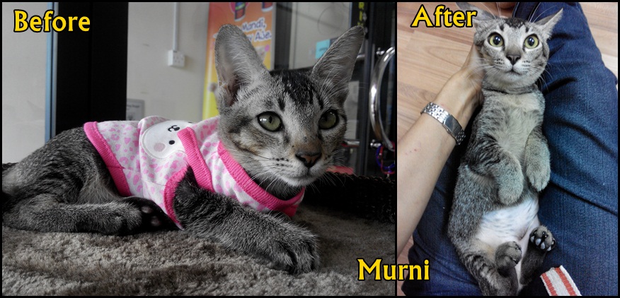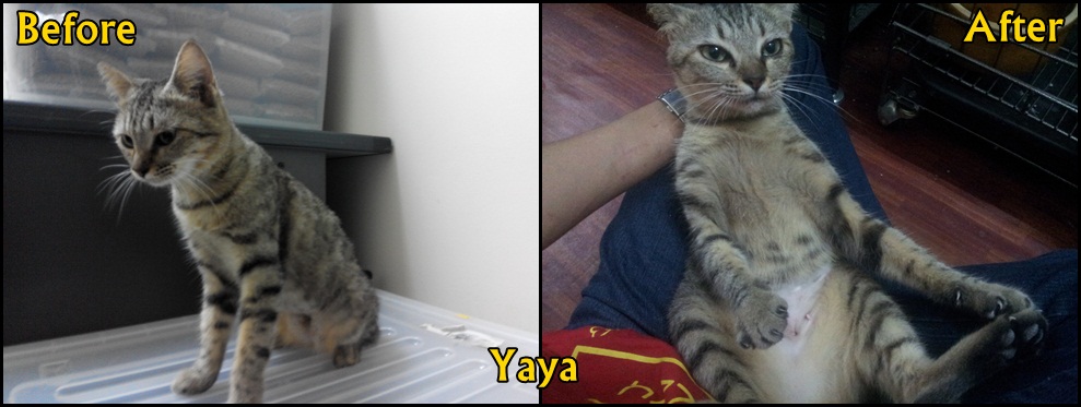 To: Chan Kah Yein <chankahyein@gmail.com>Hello Dr Chan,I would like to apply for neutering subsidy for these 3 cats:1) MurniMurni was dumped in front of our petshop with her sister, when she was about 2 weeks old. Her sister however, died. My friend took care of Murni until she is able to eat by herself. She is 6 months now and has been spayed. We will give her for adoption if anybody interested and willing to care for her.2) OrchidOrchid was about 2 months old when we found her walking nearby our shop, limping. We took care of her eversince. She has been spayed and we will give her for adoption if anybody interested.3) YayaWe found Yaya with very very bad diarrhea and mange all over her body. She was under quarantine for almost 2 weeks before she started gaining her weight again. Yaya is very healthy now and spayed. We will give her for adoption if anybody interested.I will courier you the receipt and application form tomorrow.