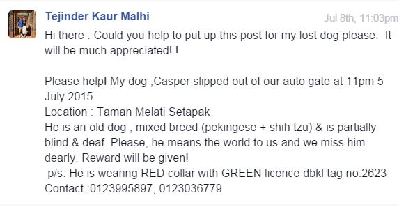 Lost dog in Setapak (Tejinder Kaur Malhi’s)