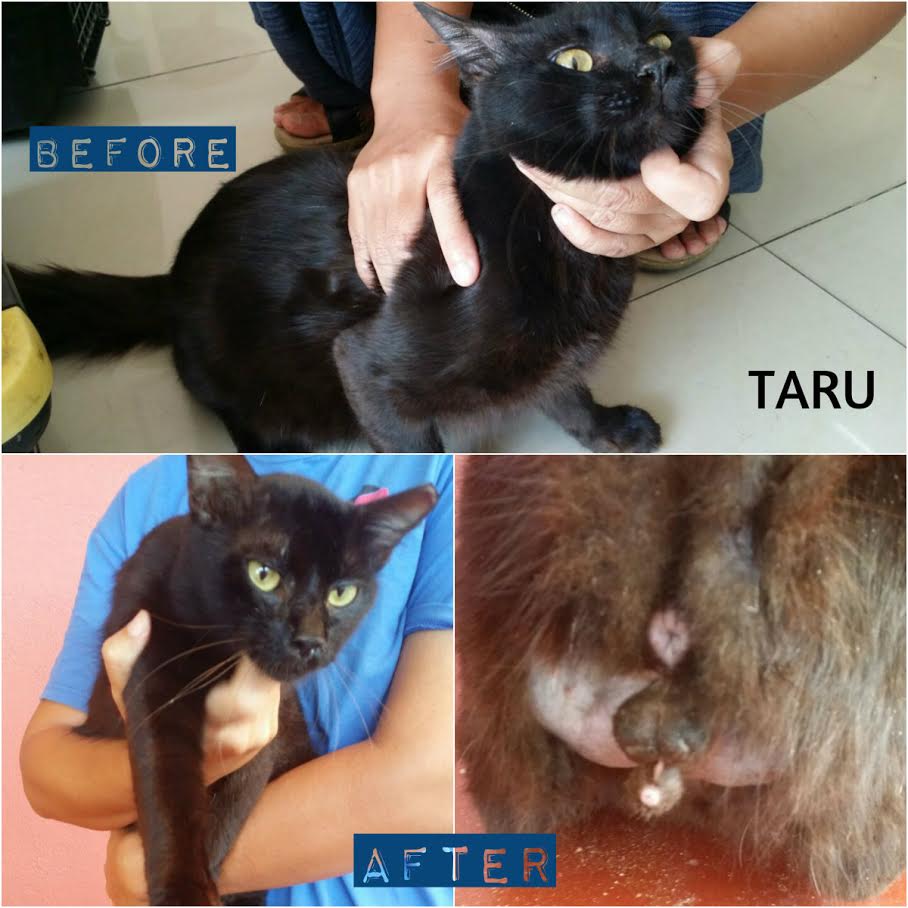 Hi Dr ChanFirstly again condolence for the loss of Daffi, but i think she has lived a good life as a catHere by i attached the photos of 3 cats for my recent claim sent just now. 2 male and 1 female1. TaruHis name actually meant HiTAM baRU, means new black cat. since we already have a few black cats in the area. he is one of our friendly community cats. domestic long hair. most probably dumped. Approximately 1 year ++2. Abang KuningOne of the tom cat here. finally managed to capture him and get him spayed3. LampirCalled her Lampir because she has this kinda annoying voice. There’s one Indonesia ghost stories and the ghost character’s name is Mak Lampir. Want to spay her before but was pregnant. Gave birth to 4 but all the litter died. Spayed nowThank you MyAnimalCare and Dr Chan for the subsidyMas