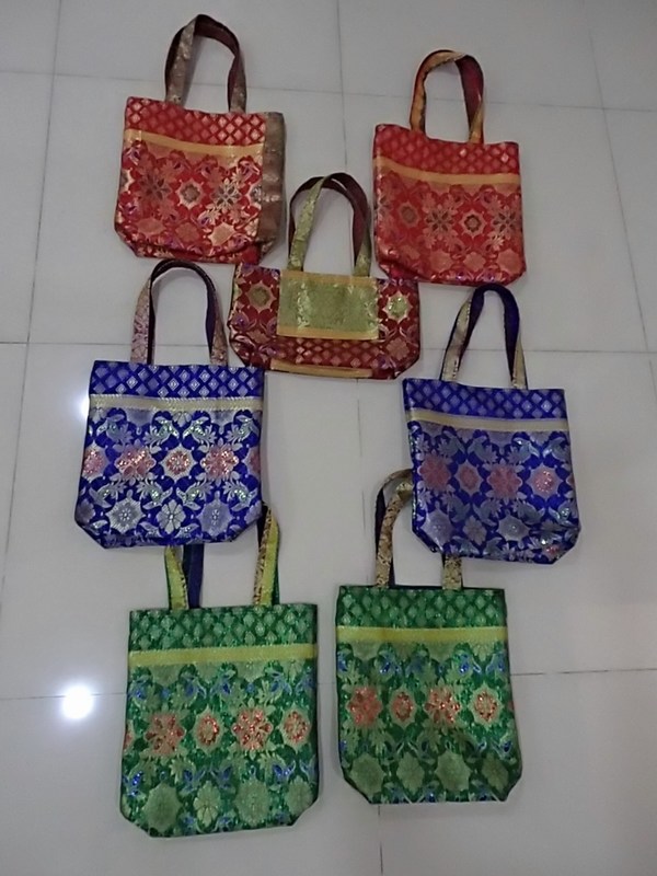 We are really grateful to our anonymous donor for her kind donation of RM300 and this gave us the opportunity to use up all of the remaining songket cloth to sew 7 mini tote bags. It is the same donor who donated the cloth too.