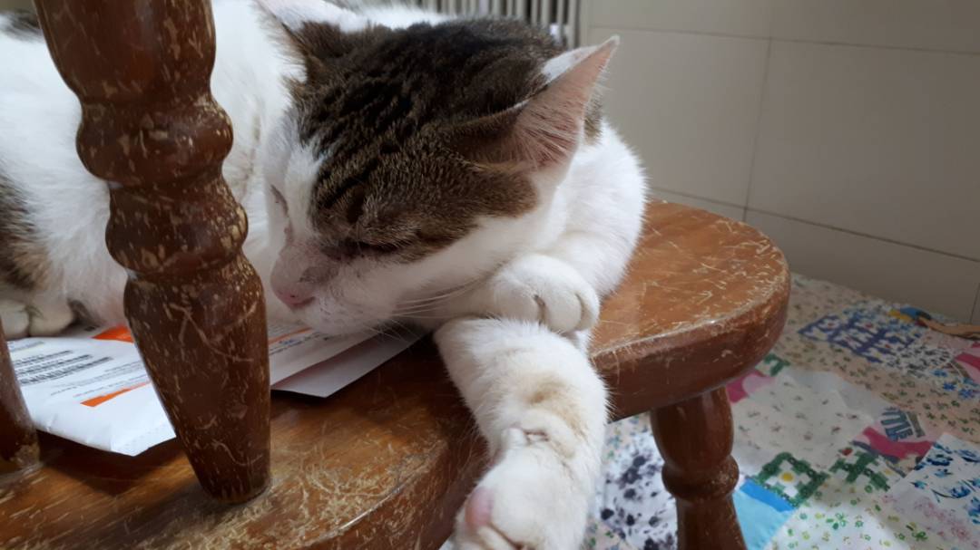 And the amazing thing is that Pole calls and when we come in, she leads us to the kibble container to let us know what she is calling for, then she goes back to her condo.