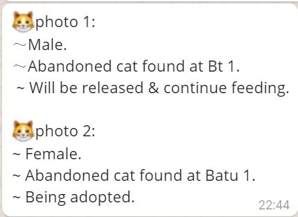 We have sponsored RM120 for the neutering of these 2 cats.