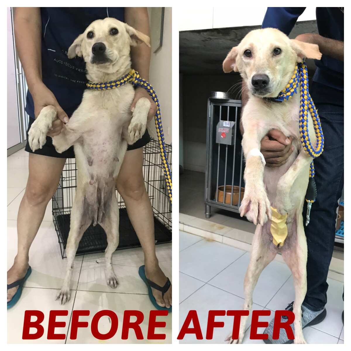 Here With attach neutered photo of female dog which founded at Sg Buloh Pasar with 4 female puppies about three Mths old which we catch on Friday night . We will try our best to looking home for them . Tq.