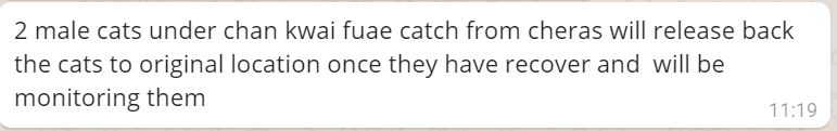 Neutering aid for 4 cats in Cheras (Wong Yee Heng, Chan Kwai Fuae, Yap Yew Moy’s)