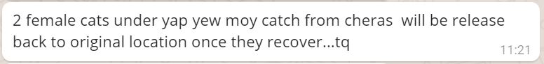 We have sponsored RM240 for the neutering of these 4 cats.