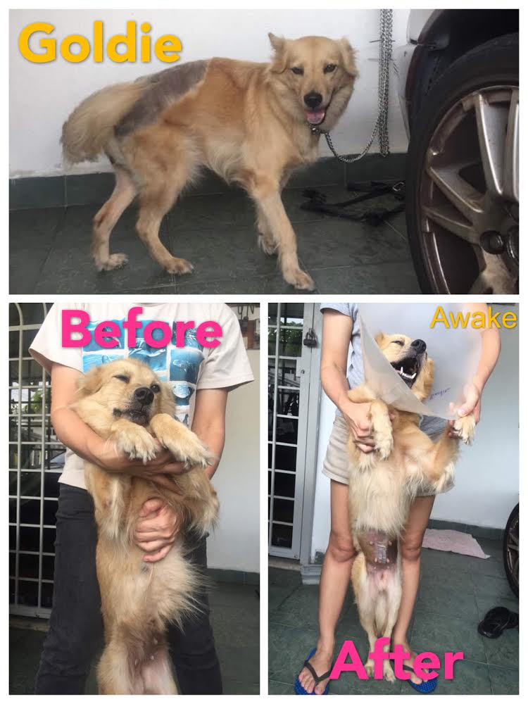 I’ve neuter another stray female dog named Goldie. We found her at a park and was limping. My friend paid for the surgery for her hind leg. And we have brought her for neuter at the vet’s in Puchong.