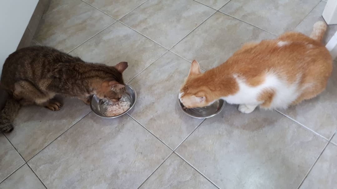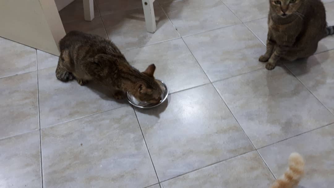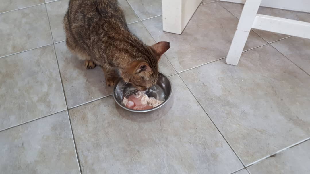 Another meal at 11.25am. I had read that rabbit and poultry are suitable for CKD cats. Vincent is eating a rabbit meal provided by a friend.