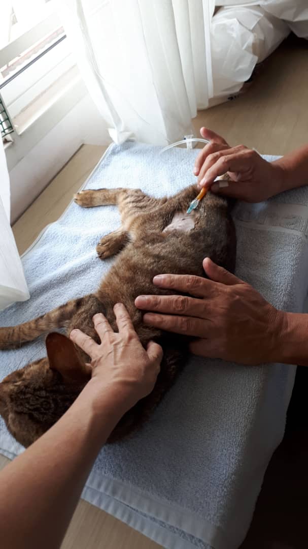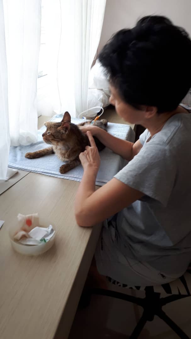 Remember late last night Vincent actually tipped the scales at 3.2kg? Well, it must have been due to the hydration (subcut) and the 6 meals. This morning, he weighed only 2.9kg. That is still better than the previous 2.5kg. Hopefully, we shall see a gradual increase.