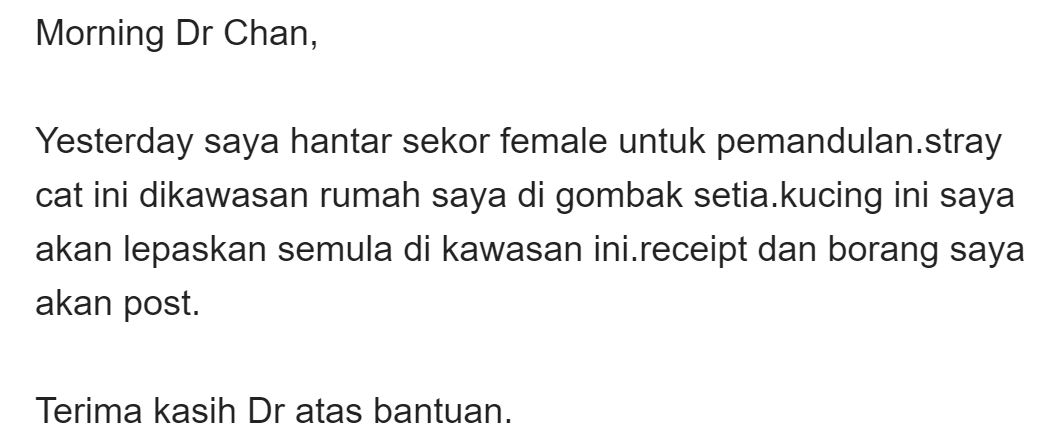 Neutering aid for 1 cat in Gombak (Nurhuda bt Jamaluddin’s)