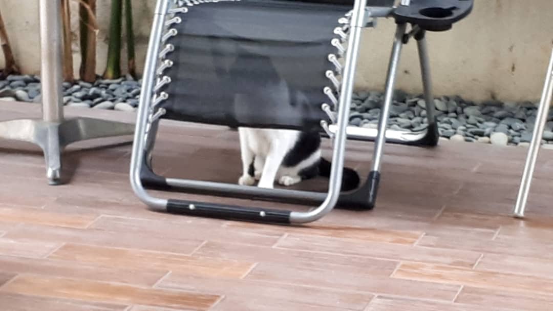 I’m camouflaging myself…Same colour as the deckchair…lebih kurang.