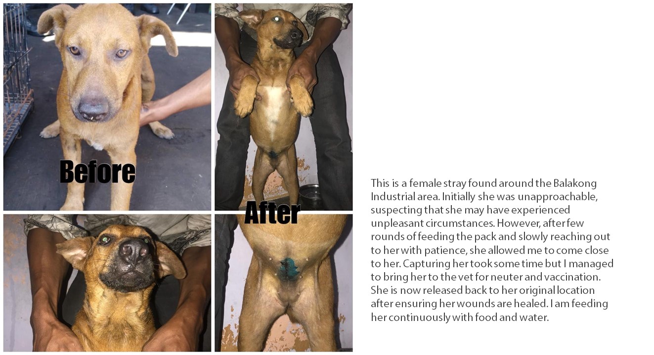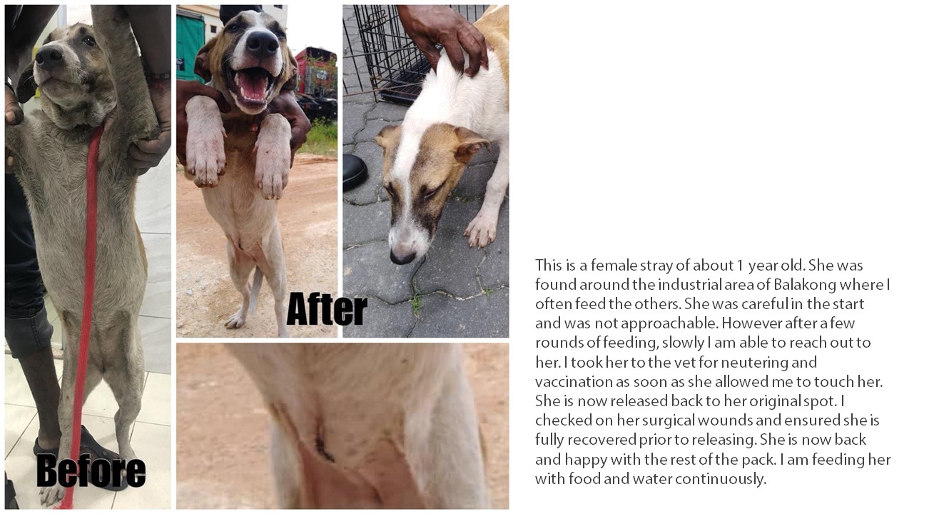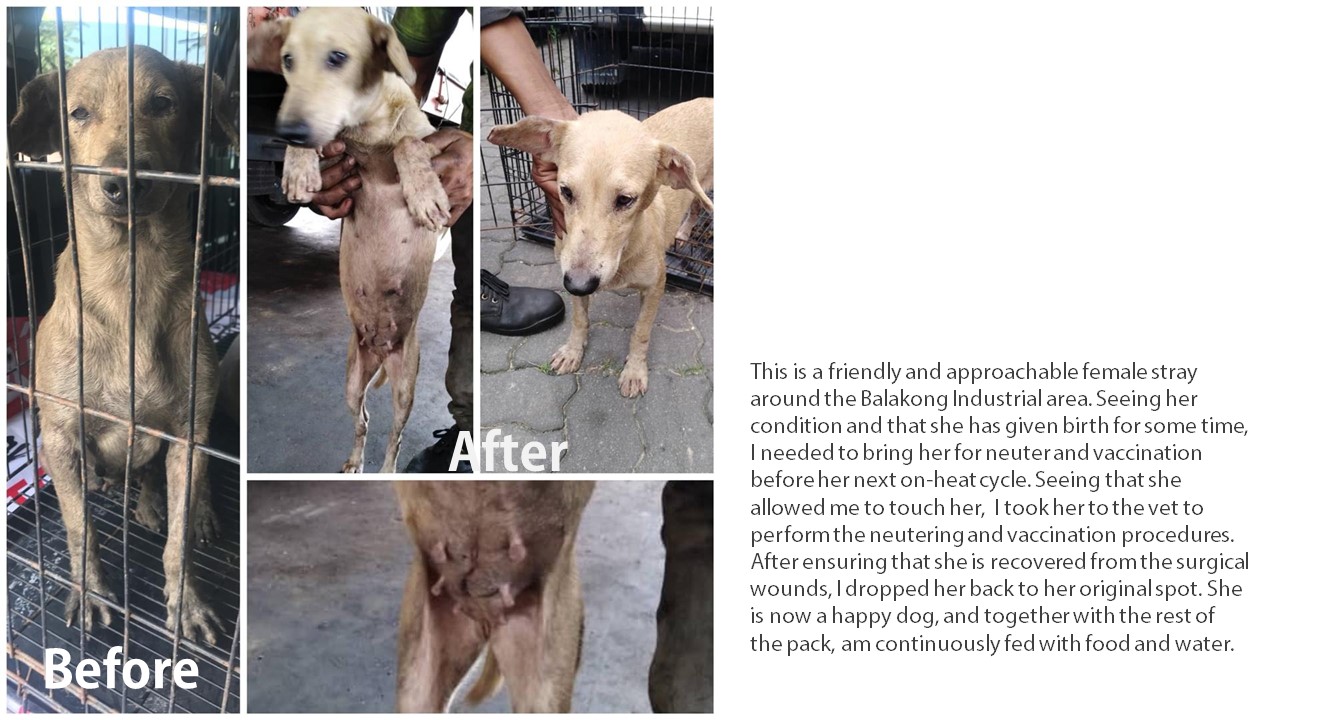 We have provided a full sponsorship of RM600 for the neutering of these 4 dogs.