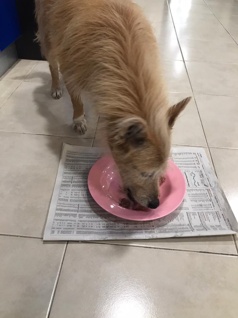 Potato is also from the same family and a few days ago, he started showing symptoms of Cushing’s. A lump appeared at his neck. Now, Potato was not willing to eat raw food. At the very smell of it, he would run to a corner and cry. Yes, literally….CRY (with tears and whining). But after 4 days of “crying”, he suddenly decided he would eat raw food, after all!