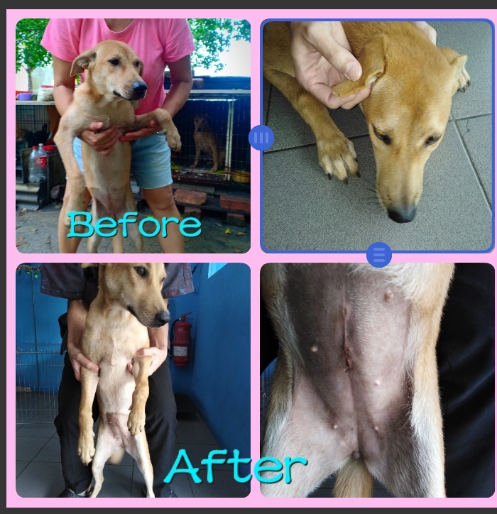 My name is Choy Har and I got to know about Animal Care from your Facebook page. I would like to apply for neutering aid, please see below little write-up about them.2 stray femaleI found them from a mama dog nearby Cheras Jaya, she gave birth of 7 puppies. I have re-home 3 of them but still left 4 puppies. I have been feeding them since young. Recently I have sent 2 females to neuter. After this I will still continue to feed them and look for a home for them.Attached of their photo before and after neuter.Please let me know if you need further informationThank you