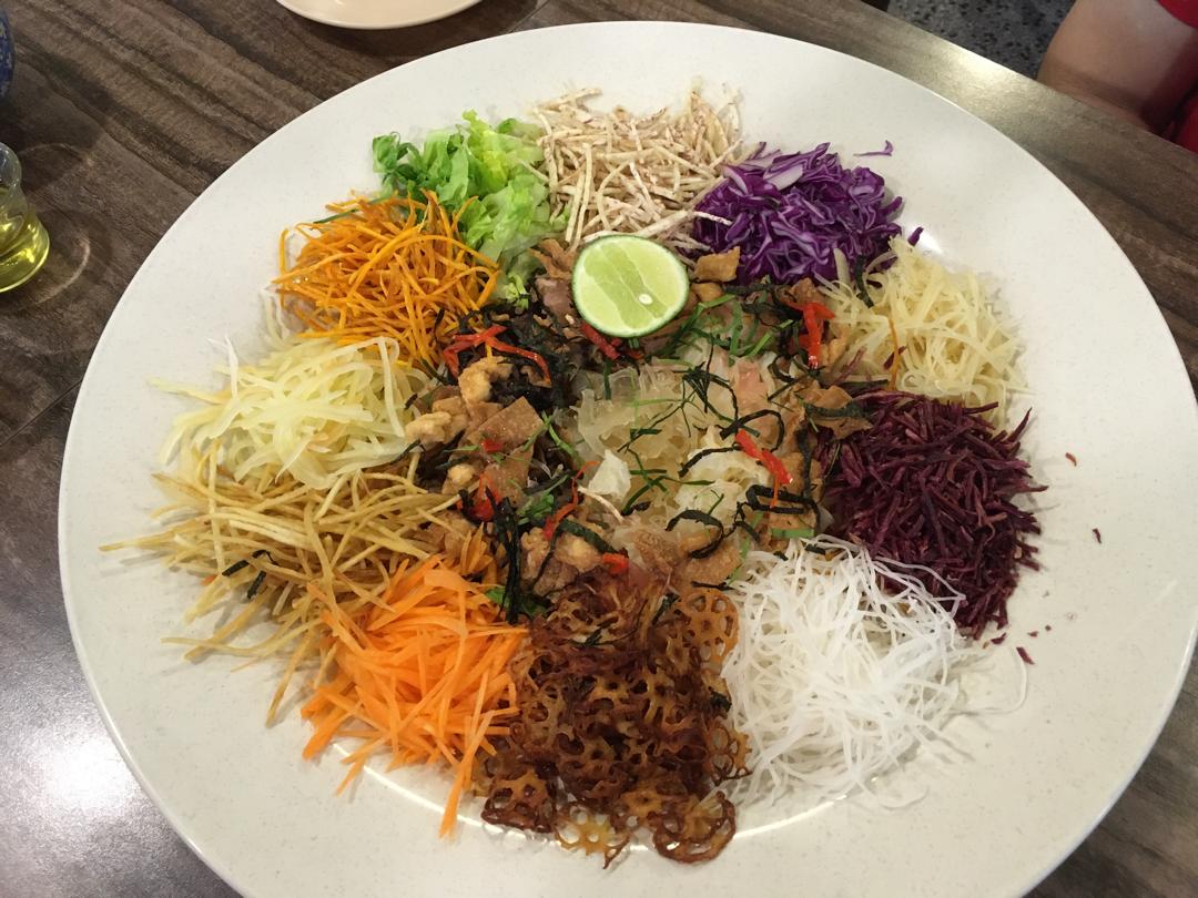 It starts with a very generous lou sang. It comes with plum sauce and olive oil.