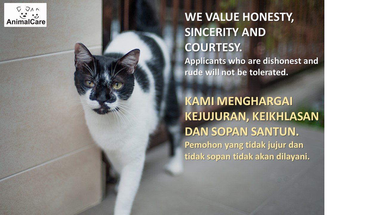 It is such a pity that in helping street animals, we have no choice but to deal with humans. In doing so, we have to implement strict policies to ensure that our hard-earned funds are used to support people who are honest, upright and sincere.