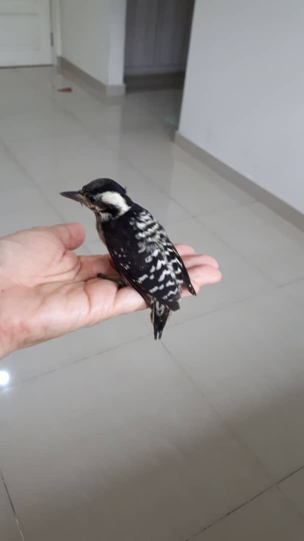 I consulted Joey on what I should do for Birdy as this is my first time nursing a baby bird. Joey says normally the mother would have to teach the babies how to look for food. Of course I know that Birdy is better off with her parents as birds are creatures of Nature and they should live as naturally as possible. So I contemplated putting her back into her nest, which we figured is one of those holes in the tree trunk in the neighbour’s house. I contacted the neighbour and he was totally agreeable to let us try to put Birdy back, provided we have a ladder that it tall enough and we would have to do it in his garden.
